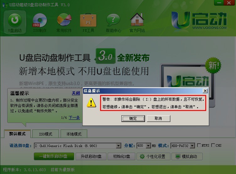在制作过程中建议不要进行其它操作以免造成制作失败,制作过程中可能会出现短时间的停顿,请耐心等待几秒钟,当提示制作完成时将自动安全删除您的U盘并重新插拔U盘即可完成启动U盘的制作。