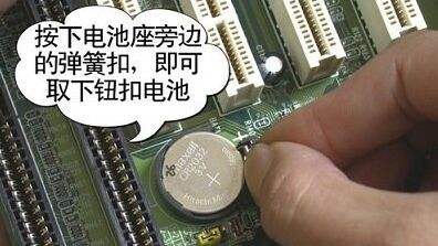 1、将主板上的纽扣电池拆下,拆下之后保持15秒以上,之后再安装上去,这样就可以消除BIOS信息,然后恢复出厂设置了。