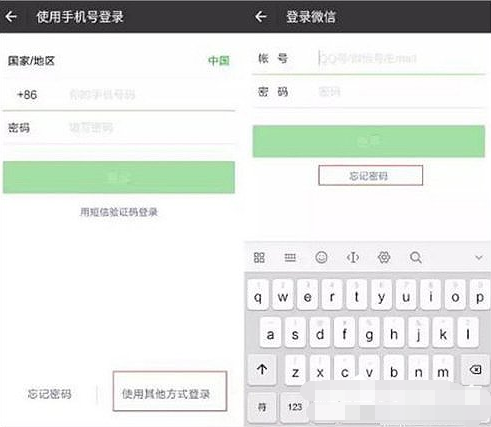 1.进入微信登录页面,选择“其他方式登录”,然后单击“忘记密码”。
