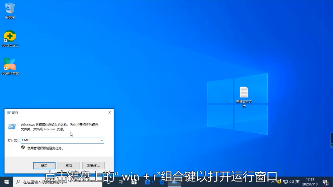 1、首先按住键盘上的Windows图标键,然后再按键盘上的R键打开运行,在这里输入CMD打开命令提示符。