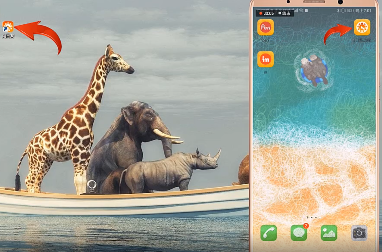 1.首先呢打开手机与电脑,并且下载向日葵远程控制软件。