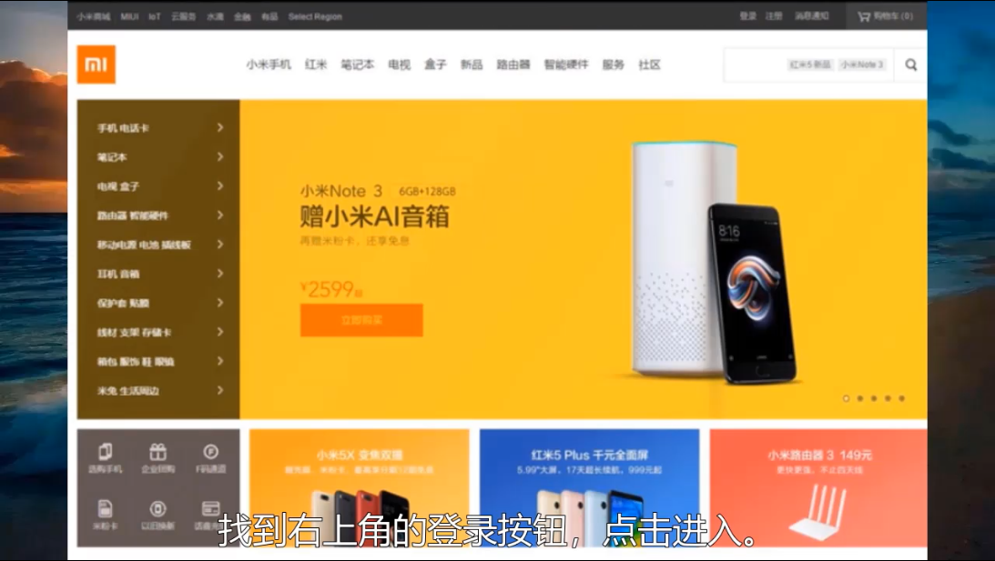 1、首先在电脑上打开进入小米官网,然后点击登录。