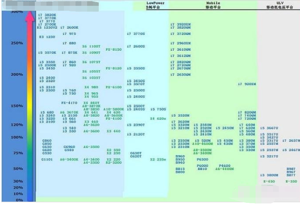 我先放一张比较全面的笔记本cpu天梯图。让大家先对cpu有个具体cpu的分析。