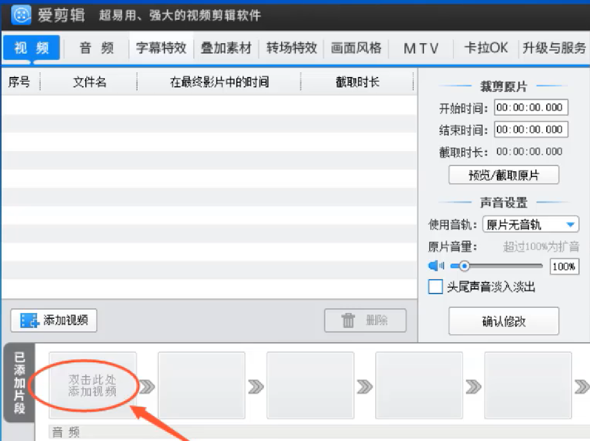 1、首先双击打开”爱剪辑“软件,在双击“添加视频”。