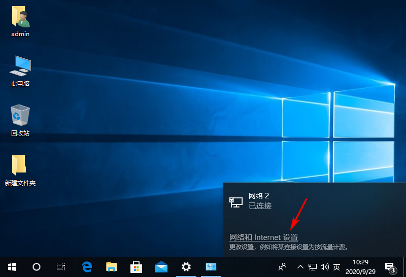 1、首先点击桌面下方的网络连接,点击“网络和Internet”设置。