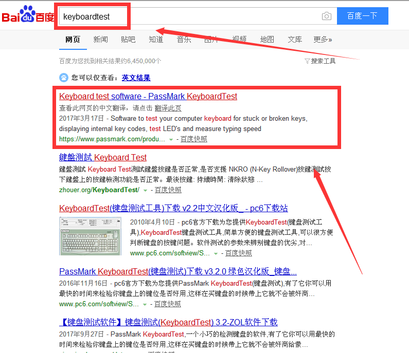 1、我们在百度搜索KeyboardTest,进入官网。