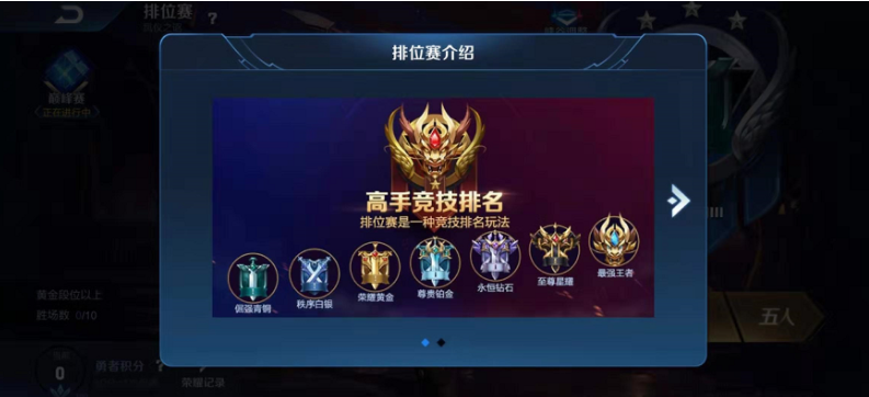 玩家打排位必须按照王者荣耀等级顺序,从青铜开始玩,按照顺序到白银、到黄金、到铂金……到王者。