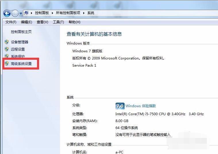1、打开电脑的系统属性,然后在系统属性中找到高级系统设置。
