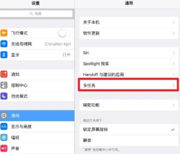 1、打开iPad设置,选择通用点击进入多任务。