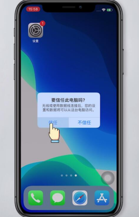 1、首先用数据线将手机与电脑连接起来,并在手机上点击信任