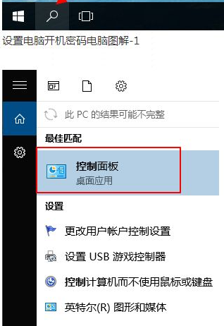 1、点击桌面左下角的搜索按钮打开搜索框,输入“控制”两个字搜索控制面板入口。在搜索结果中找到控制面板的选项,并点击打开。