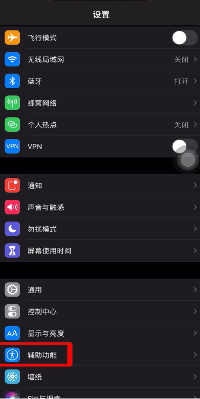 1、打开“设置”,点击“辅助功能”。