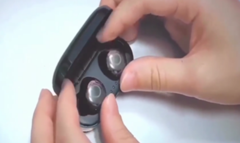 3、待左右耳机红灯闪烁两次后,取出耳机。