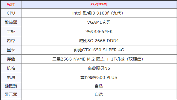 1.办公+游戏都可以的高性价比组装电脑配置单