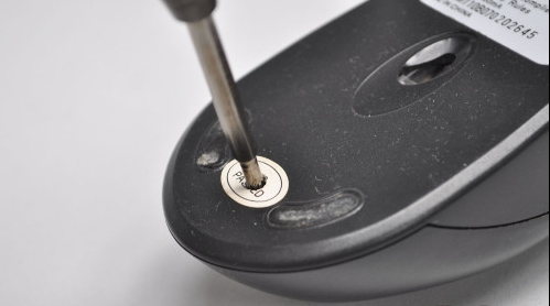 1、先将鼠标下面四个脚贴用刀片撬开,用手也可以。有些需要先把质保标签下的螺丝拧开。