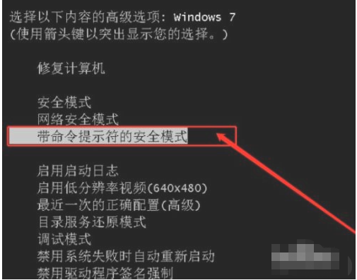 1.电脑重启,连续按下F8进入电脑高级选项,选择安全模式进入电脑。