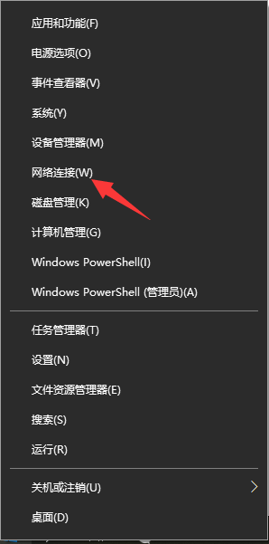 1、鼠标右键“开始菜单”,然后在菜单栏选择“网络连接”选项进入。