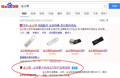 1、首先打开百度搜索“金士顿”,找到金士顿的官方网站,并打开;