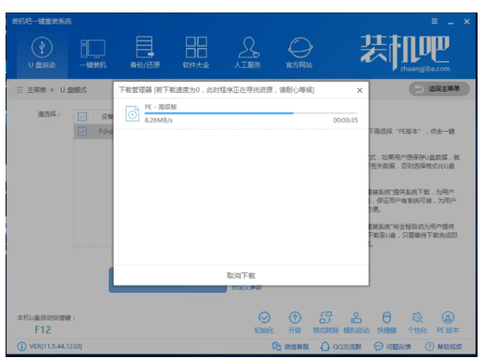 另外,装机吧还提供系统下载,可以不用去找系统那么麻烦,当然如果下载好了最直接跳过下载系统,只需等待下载PE即可开始制作。