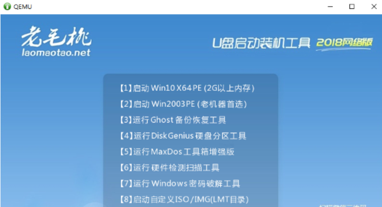 6.最后预览老毛桃WinPE界面成功启动说明老毛桃工具制作u盘启动盘成功啦,我们按住Ctrl+Alt可释放鼠标进行窗口关闭的操作。