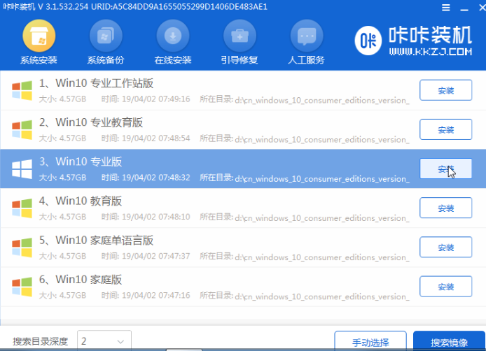 5、在pe系统桌面上打开咔咔装机工具,然后选择系统点击安装。