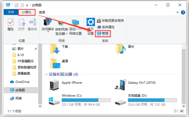1、打开电脑桌面的「此电脑」,点击「计算机」-「管理」。
