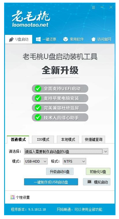 软件版本:老毛桃u盘启动盘制作工具