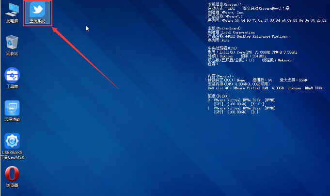 12、双击打开白云PE系统桌面上的重装系统;