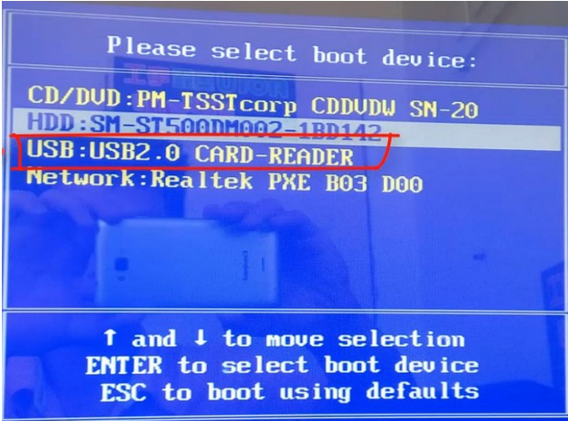 5、插入u盘,开机快速断续的按热键进入快速启动菜单。