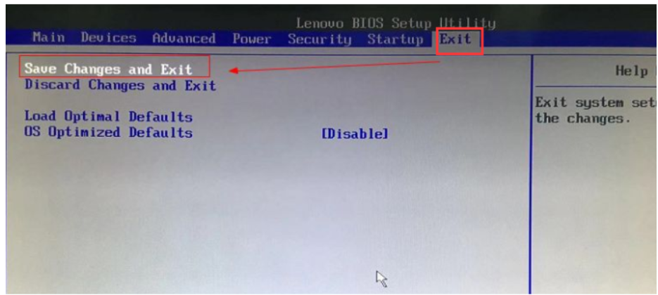 6.切换到exit页面,选择save changes and exit项,或者按F10进行保存退出。