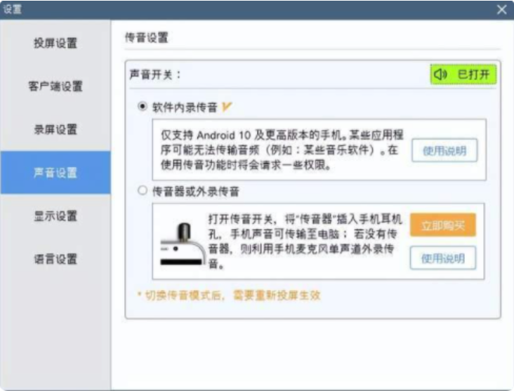第三步:设置投屏的画质、分辨率、屏幕饱和度亮度等还能把手机声音传到电脑
