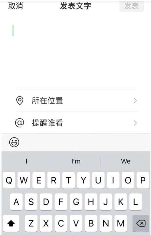 2,点开“朋友圈”,长按右上角的相机按钮,出现“发表文字”界面后即可在朋友圈中发送文字了。