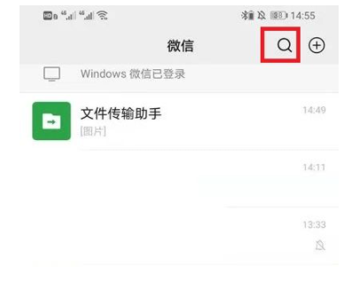 1、进入微信,点击右上角的搜索图标,输入“ 群发助手 ”,再点击该功能。