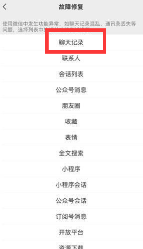 1、打开手机微信,搜索框中输入“recover”,点击故障修复,再选择“聊天记录”,就可以找回丢失的聊天记录了。