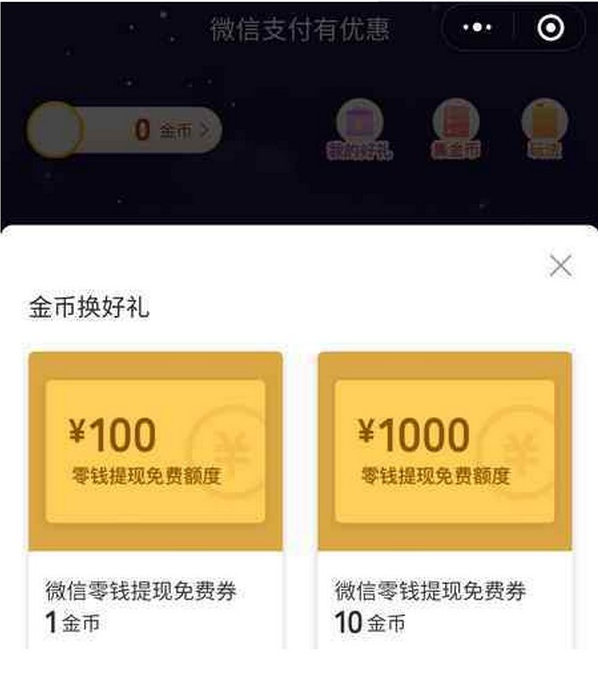 步骤三:“支付有优惠”小程序可以接到使用微信支付而生成的金币。
