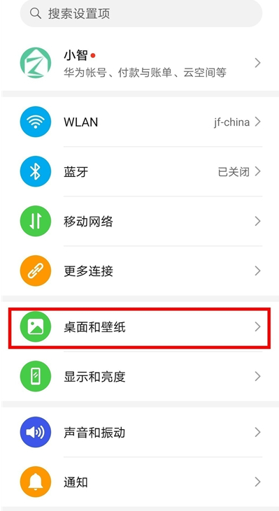 1、打开手机设置菜单中的【桌面和壁纸】。