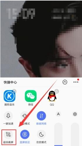 1、在vivo手机桌面处,手指从下往上滑动,以此打开状态栏,在状态栏选项界面中,点击“超级截屏”。
