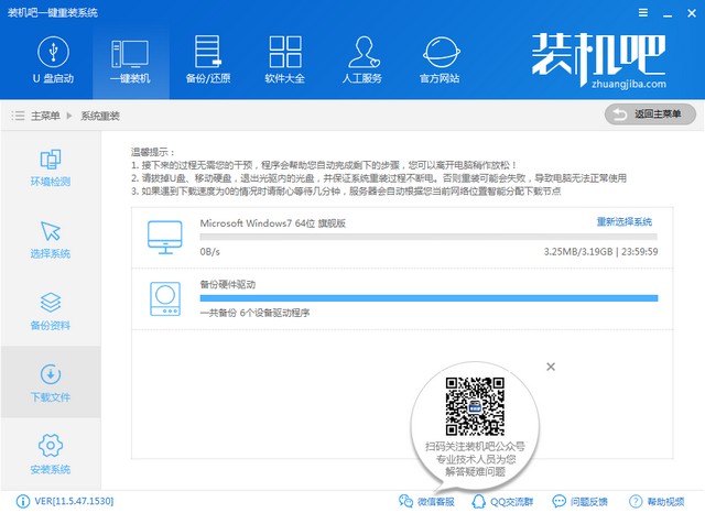 4、之后装机吧就会自动下载安装win7系统啦,后面的步骤我们可以静静等待,也可以手动操作。