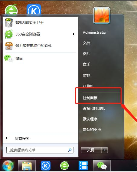 1、点击开始菜单之后再点击‘控制面板’,如图所示。