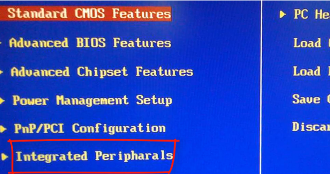 1、按启动热键进入BIOS,打开“Integrated Peripharals”;