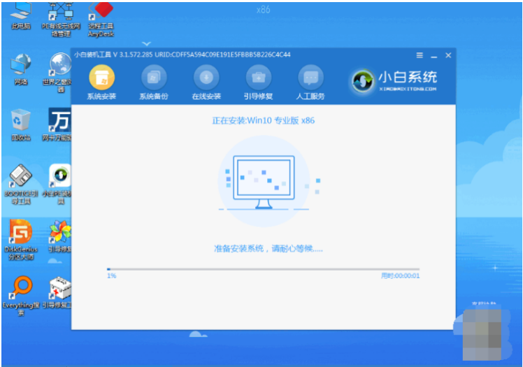 5、进入pe系统之后,小白装机工具将会开始安装win10专业版系统,耐心等待。