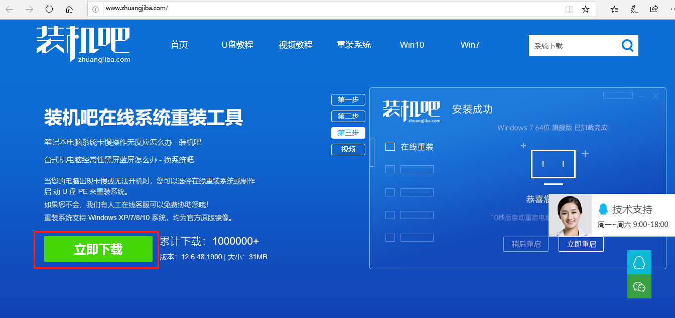 1、首先,打开百度搜索“装机吧官网”到官方网站上下载装机吧一键重装系统软件,并对电脑内部的重要数据做好备份。