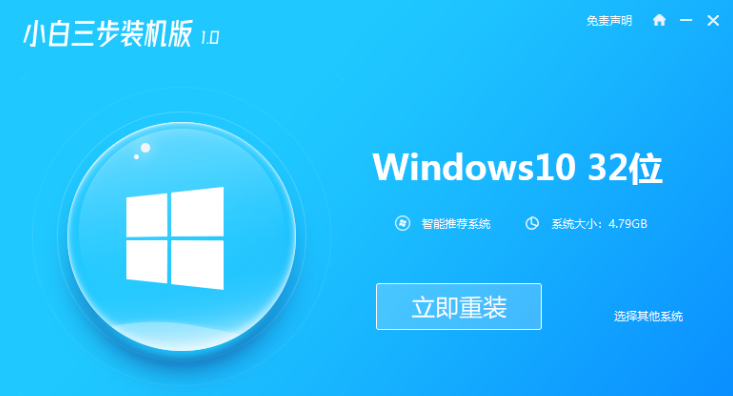 1、退出电脑上所有的安全软件。然后去小白系统官网下载安装小白三步装机版软件并打开,选择自己想要安装的系统,点击立即重装。