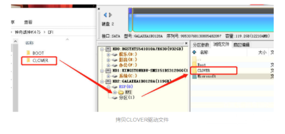 1、将之前拷贝的clover文件夹复制到硬盘的ESP分区