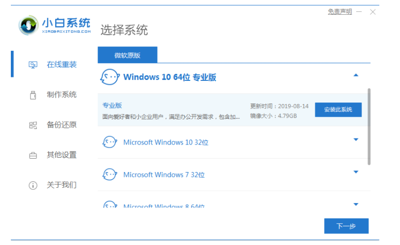 1、下载并运行小白一键重装系统软件,选择想要重装的的系统。