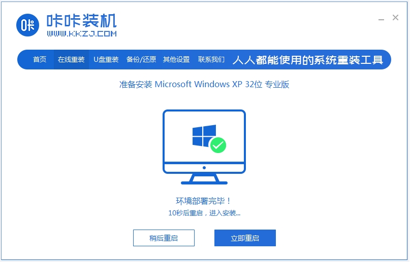使用咔咔装机在线一键重装xp系统: