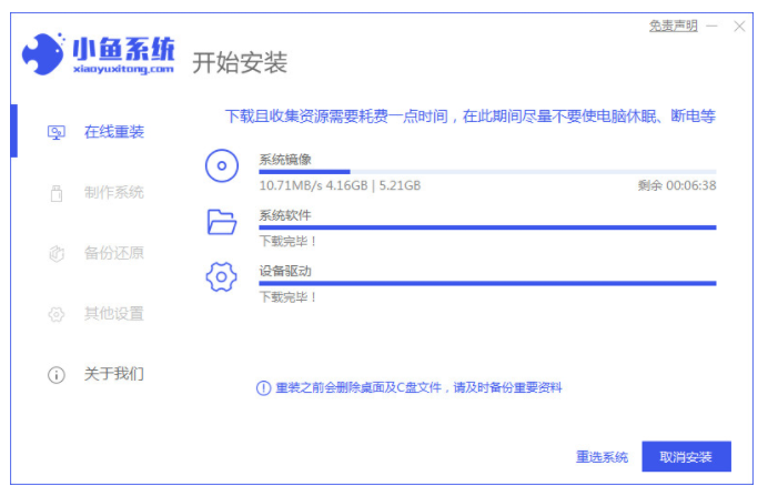 3、等待软件自动下载镜像系统,设备驱动等资料。