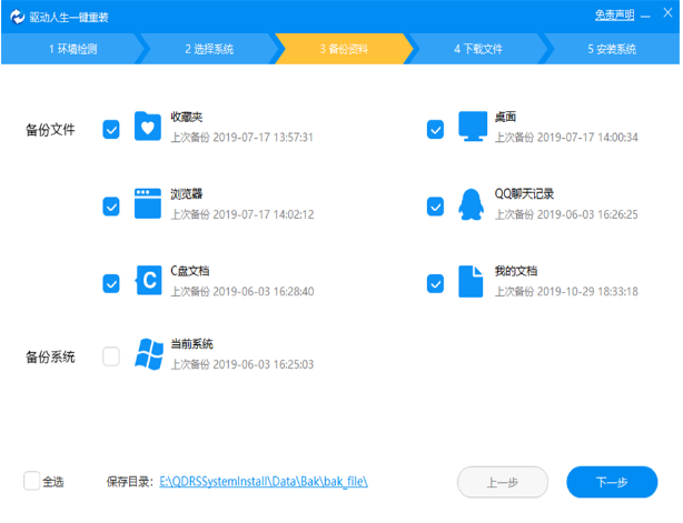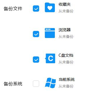 6、接着选择需要备份的文件,如果没有就不勾选。