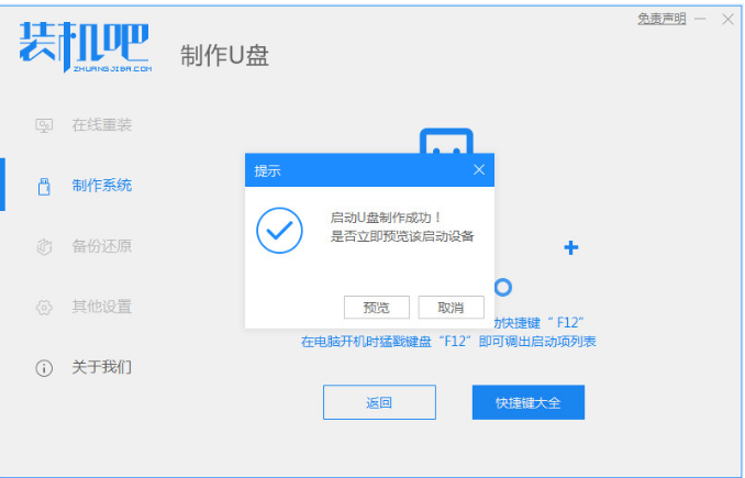 1、首先使用装机吧重装系统软件将普通U盘制作启动U盘。