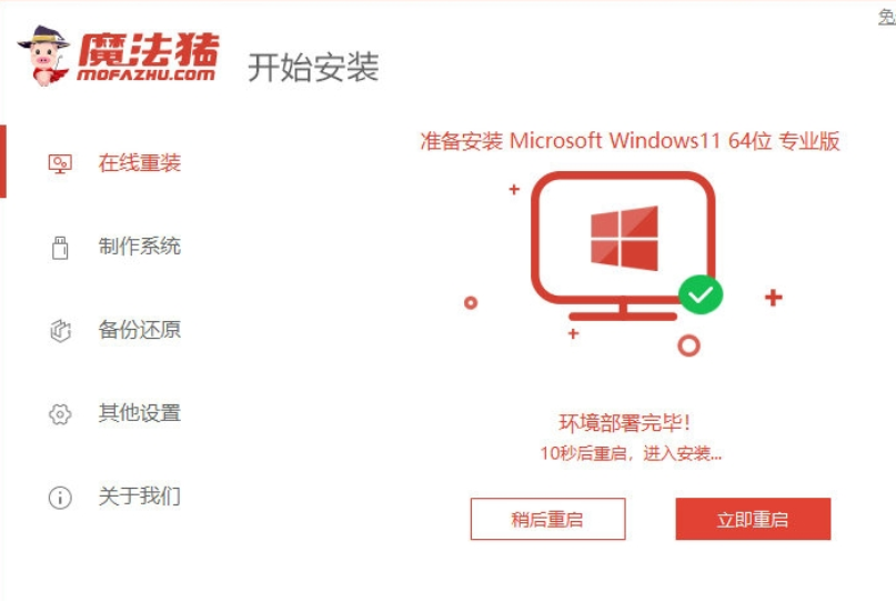 1、如何重装电脑系统win11专业版,首先下载安装魔法猪装机大师软件,选择win11系统安装。